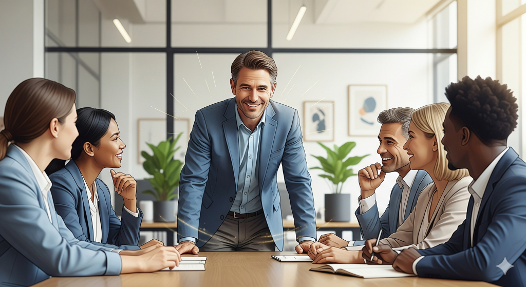 • Управување со односи (Relationship management): Ова е врвот на EQ. Тоа е способноста да се користат сите претходни вештини за да се изгради рапорт и да се влијае на другите. Менаџерите кои се одлични во управување со односи знаат како да решаваат конфликти, да инспирираат промени и да мотивираат.